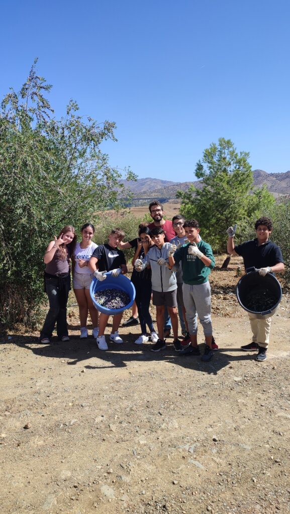 Este año hemos cogido aceitunas con nuestro alumnado de 1º de ESO y de 2º de Formación Profesional Básica, lo que conocemos como verdeo o verdear, con la intención de que nuestro alumnado del módulo de cocina y alimentación pudiese poner en práctica el